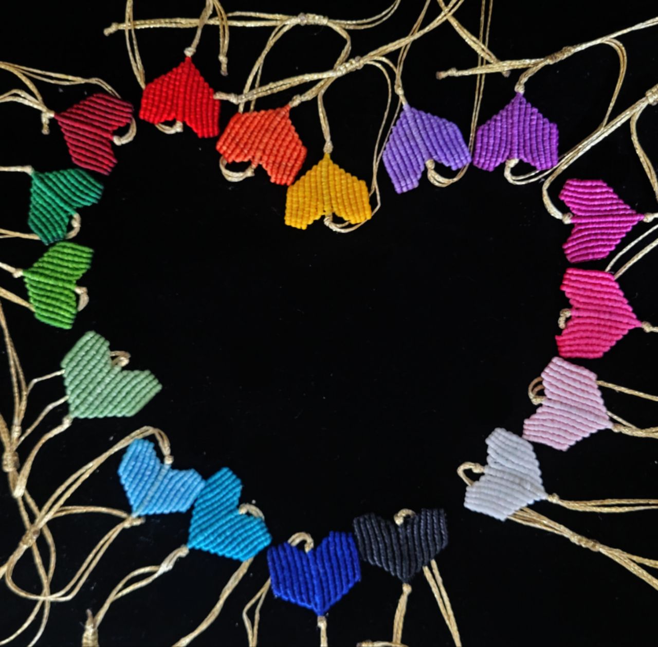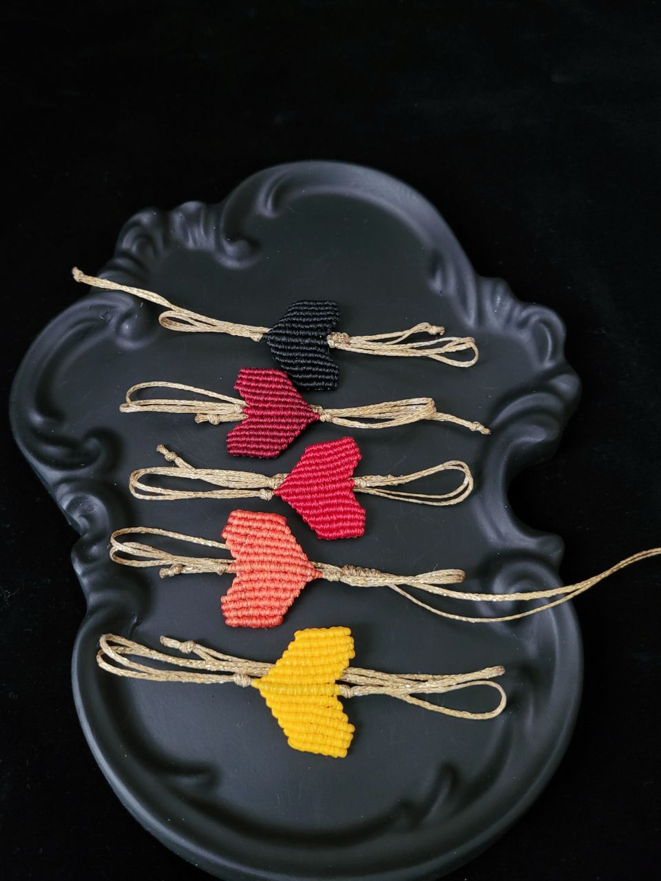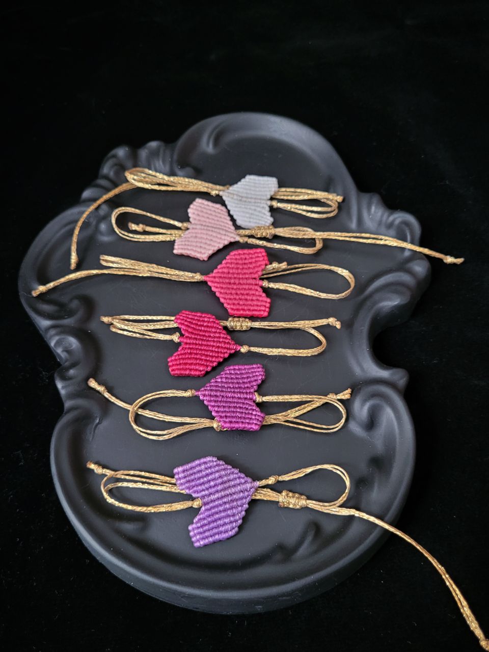 دستبند میکرومکرومه مدل قلب بافته شده با نخ موم زده