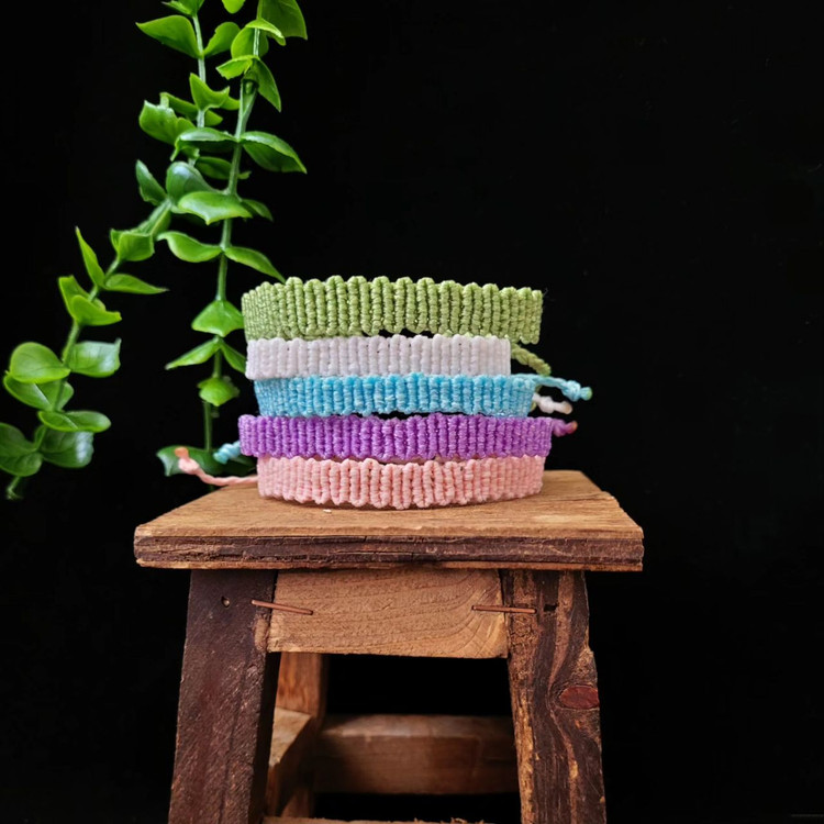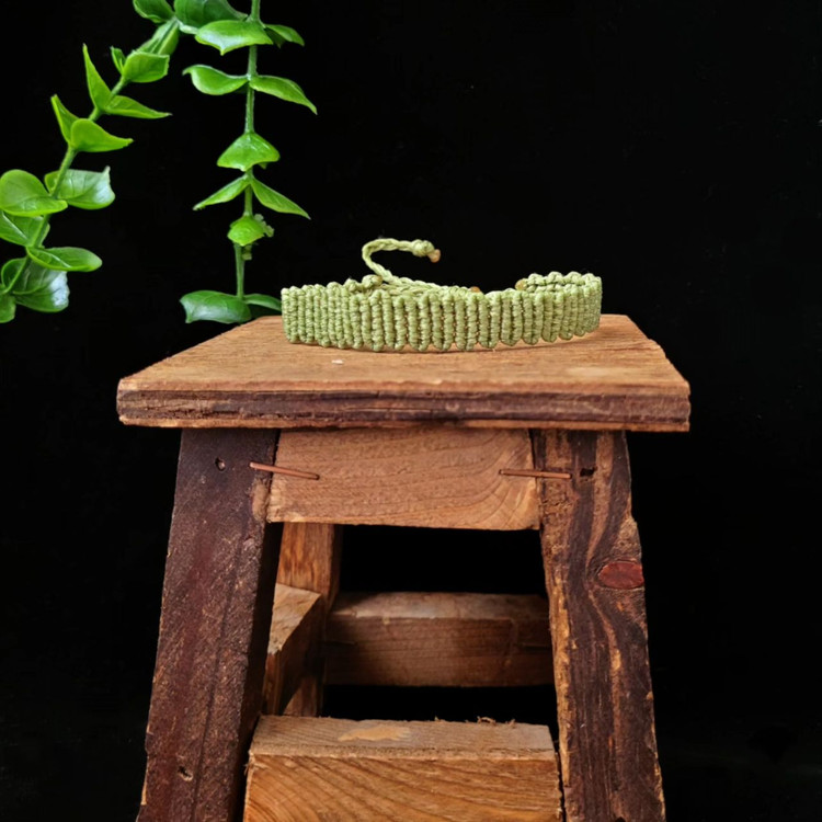 دستبند میکرومکرومه مارپیچ خطی بافته شده با نخ موم زده