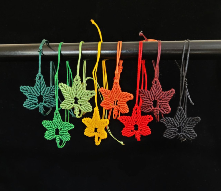 دستبند میکرومکرومه بافته شده با نخ موم زده درجه یک، مدل برگ چنار به طول ۳ سانتی متر، دارای گره کشویی