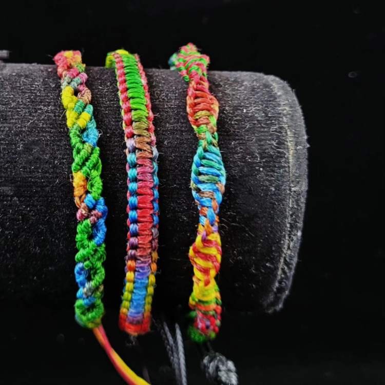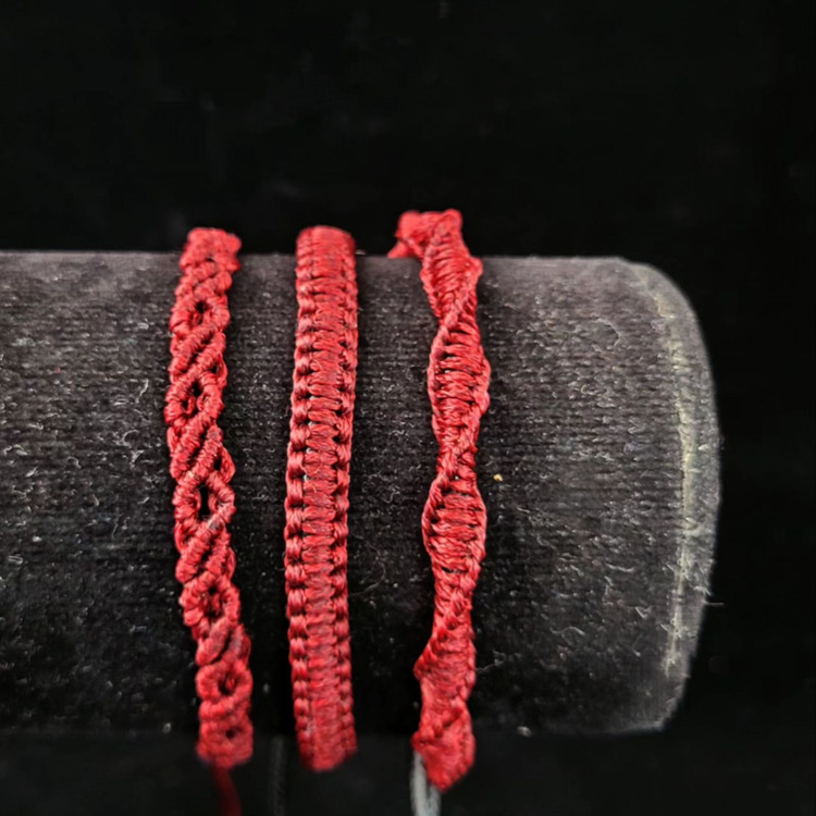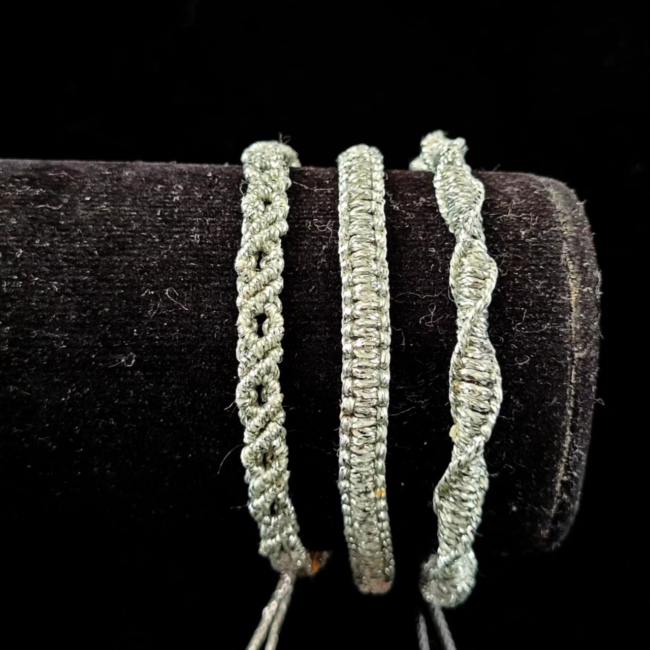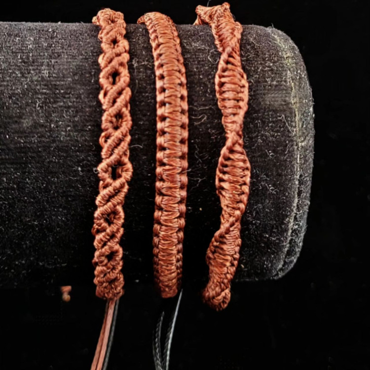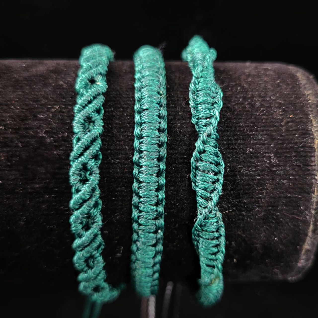 ست دستبند ۳ تایی میکرومکرومه طرح DNA، ساده و لوزی بافته شده با نخ موم زده